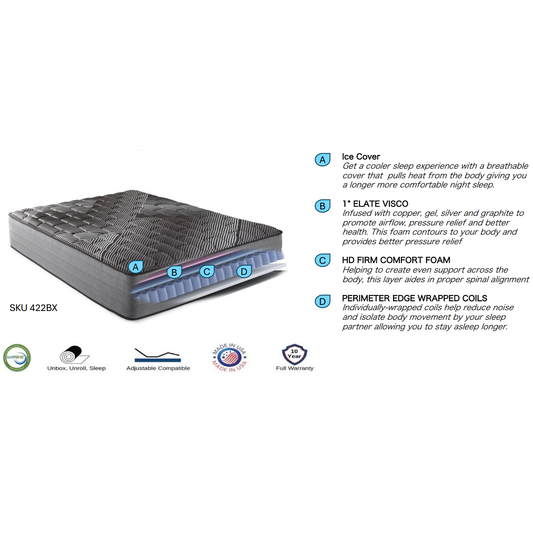 Mattress in a Box | BLACK ICE Firm Hybrid Cooling Mattress Made in the USA | 14-Inch