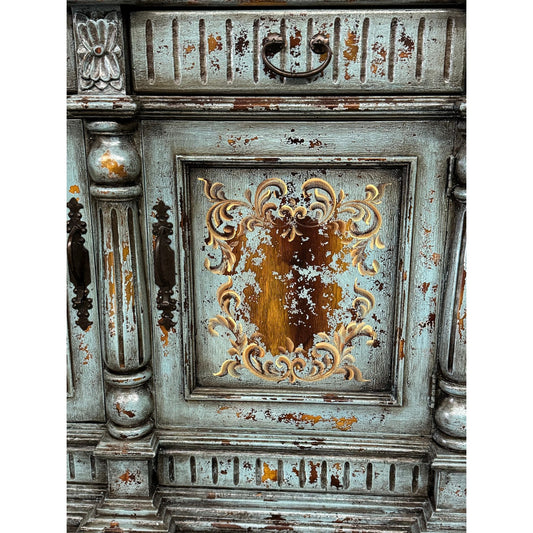 Brenne Turquoise Distressed Dining Room Buffet Table
