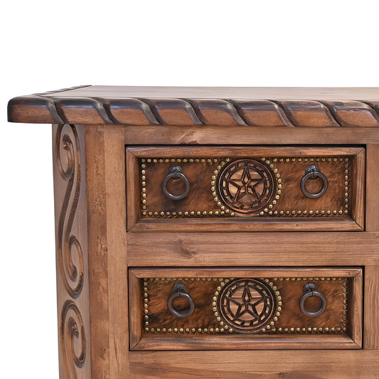 Sunset Ridge Copper 2-Piece Bar & Hutch Set | 12 ft wide | Hand-Carved | Iron Nailhead Trim & Foot Rail