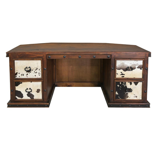Vaquero Executive Desk | Cowhide & Hand-Tooled Leather Longhorn Panel