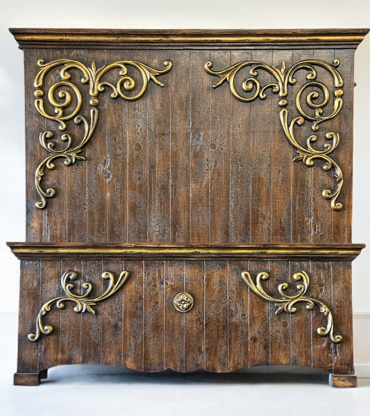 VALEN BED 85" Tall | Brown Wood Carved Frame with Scrollwork | Old-World Style | Bed Only | Includes Delivery and Assembly