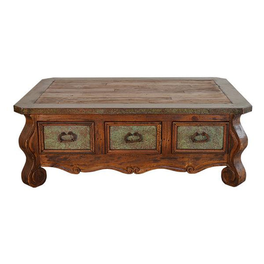 Verde Patina 6-Drawer Copper Coffee Table | 23 x 37 x 53