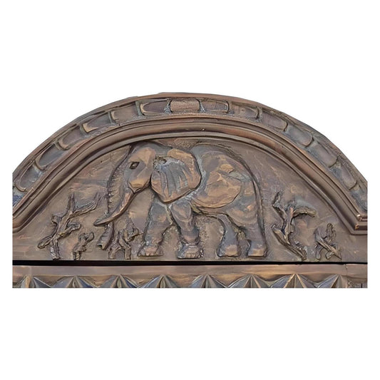 Safari Crest Gun Display Cabinet with Built-In Rack | Hand-Carved Elephant Motif | Glass Front