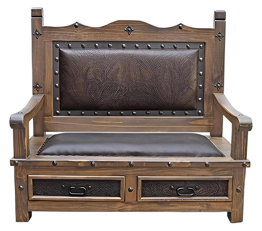 South Hill Tooled Leather Bench With Drawers