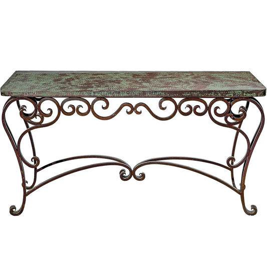 Stone Basin 60" Verdigris Copper Top Console With Iron Base