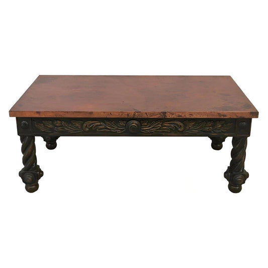 The Spaniard | Rustic Elegance Copper-Top Coffee Table with Hand-Carved Base | 22 x 28 x 55
