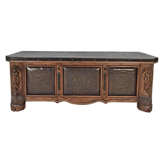 Whisper Ridge Executive Desk | Hand-Carved Solid Wood, Tooled Leather Top and Panels