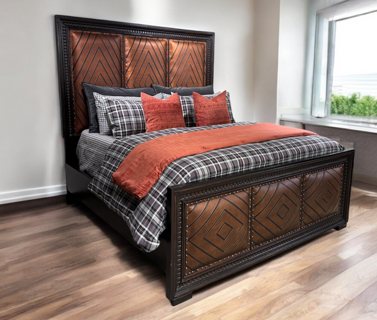 ANDES BEDROOM SET, 79.5" Tall - Upholstered Leather, Dark Brown Wood Frame - Includes Delivery and Assembly