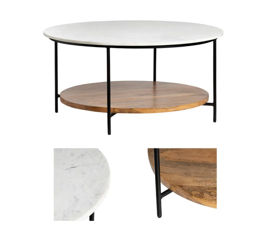 Ashmont Drive Round Marble & Wood Cocktail or Coffee Table