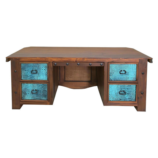 Azul Croc Executive Desk | Cowhide & Embossed Turquoise Crocodile Panels