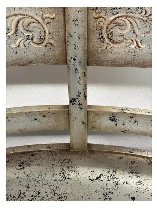Briare Bench - Curved, Antique White, Distressed Crackle Finish, Weathered Iron Detailing
