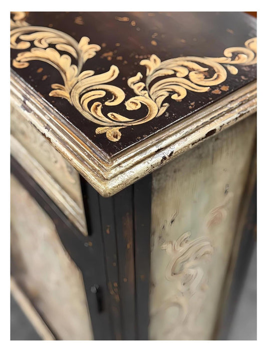 Casteljaloux Nightstands (2-Pack) Antique Black with Distressed Finish and Ornate Gold Scrollwork