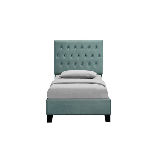 Complete Upholstered Twin Bed; Turquoise; Luxurious; Button Tufts