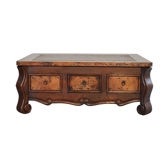 Colonial Elegance Wooden Coffee Table with Copper Trim & Storage | 23 x 37 x 53