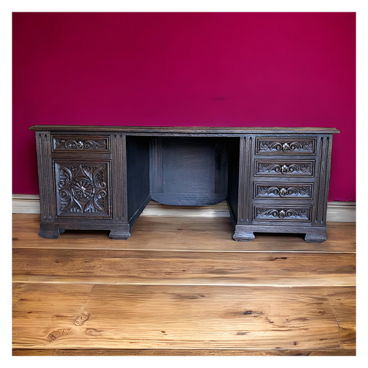 Alet-les-Bains Executive Office Desk, Dark Brown, Hand-Carved Floral Panels