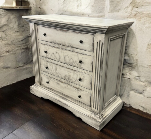 ALESSANDRA BEDROOM SET | 87" Tall | Rustic Distressed Finish | Waxed Off-White Wood | Includes Delivery and Assembly