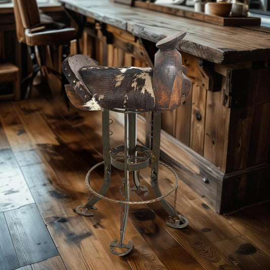 Cowboy's Saddle Swivel Barstool | Handcrafted with an Iron Base & Horseshoe Feet (2 or 3 Pack) 30"