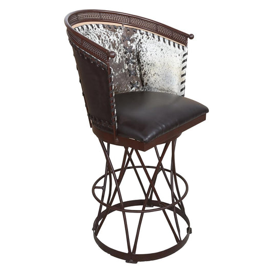 Cowhide & Leather Barrel Back Swivel Barstool w/ Solid Steel Construction (2 or 3 Pack) 28"