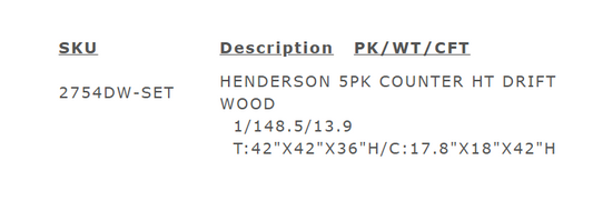 Darby 5PC Counter Height Table & 4) Chairs; Light Gray