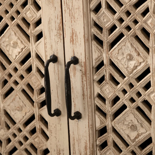 Les Eyzies-de-Tayac Chest, Distressed White, Concentric Square Panel Doors, Metal Square Pulls