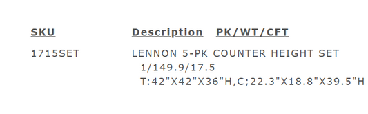 Lewis 5-PC Counter Height Table & 4) Chairs; Drift Wood Finish