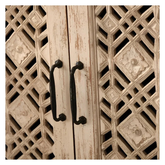 Limestone Hill Old Door Top, Black Wash Finish, Hand Carved Console