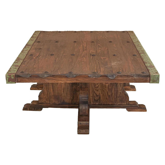 Luna Verde Distressed Coffee Table with Green Copper Edges | 21 x 44 x 55