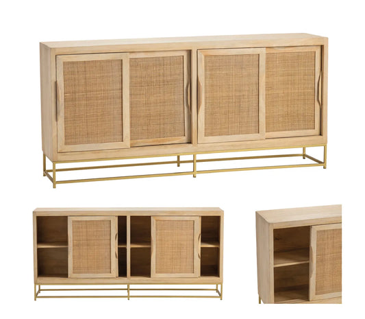 Réaux Natural Wood Dining Room Buffet Table With Woven Panel Doors