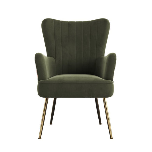 Recycled Green Floral Velvet Mid-Century Modern Chair (2-Pack)