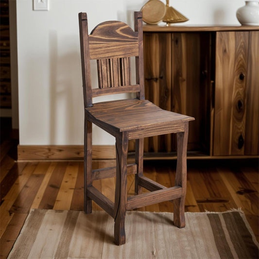 Rustic Hand-Carved Wooden Barstools with Backrests (2 or 3-Pack) - 24 or 30 in - Counter or Bar Height