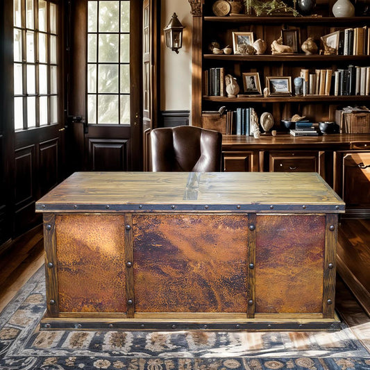 Rio Grande Copper Executive Desk | Handcrafted Wood with Copper Panels