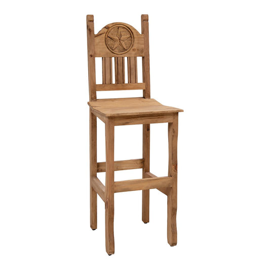 Rustic Light Honey Western Hand-Carved Wooden Barstools with Star Emblems in the Backrest (2 or 3-Pack) - 24 or 30 in - Counter or Bar Height