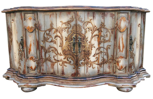 Rocaille Rustic Oak Buffet Table in Lyon Handcrafted Distressed Finish Dining Room Buffet Table