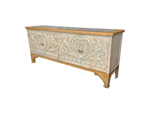 Rochambeau Glamour Handcarved Grey Dining Room Buffet Table in Dijon Crystal Accents