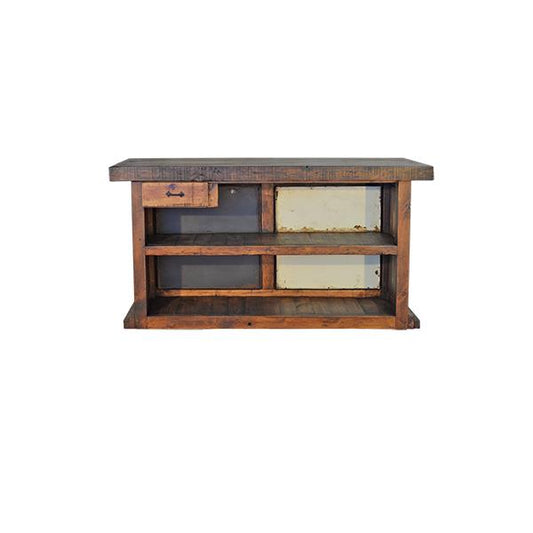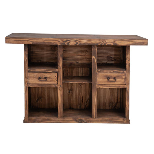 Sonora Rustic Bar – Natural Wooden Finish with Wine Storage & Iron Footrail