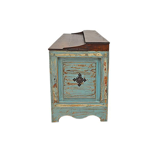Santa Fe Cantina Bar – Turquoise Distressed Wood with Rustic Charm