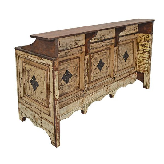 El Paso Cantina Bar – Antique White Distressed Wood with Iron Accents