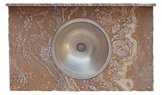 Red Bluff Stone Top Hand-Carved Vanity With Sink, Leather Panels