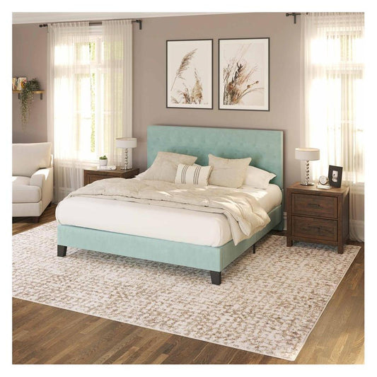 Complete Upholstered Queen Bed; Turquoise; Luxurious; Button Tufts