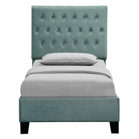 Complete Upholstered Twin Bed; Turquoise; Luxurious; Button Tufts