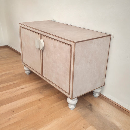 La Gacilly Chest, Beige Velvet Finish, Dual Door Cabinet With Round Knob Accent, 48W