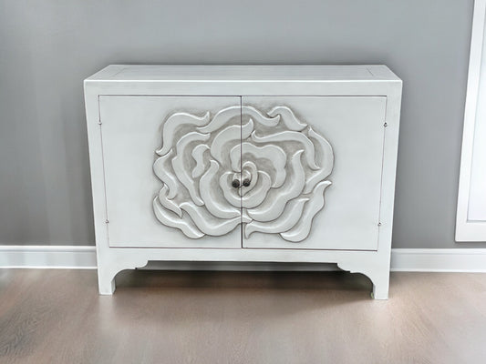 Laguiole Chest White, Hand Carved Floral Rose Motif On Doors, Matte Finish, Premium Hardware