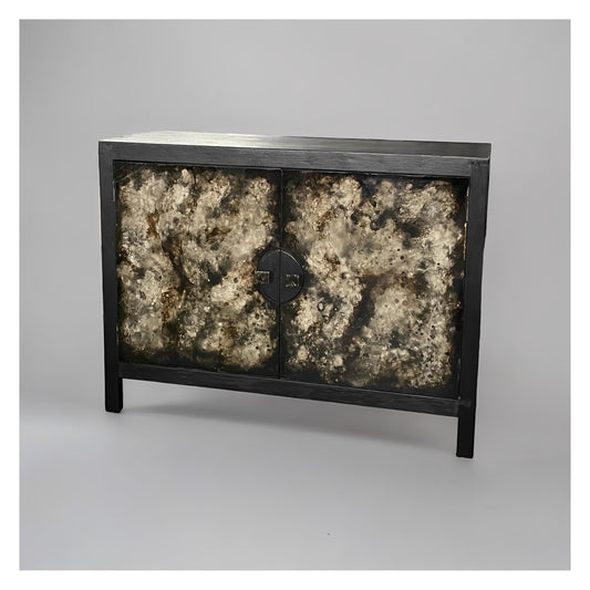 Issenheim Chest, Black, Distressed Faux Marble Look Doors With Round Metal Hardware