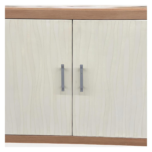Erquy Chest, White, Storage Cabinet Featuring Textured Wave Pattern Doors and Solid Wood Trim