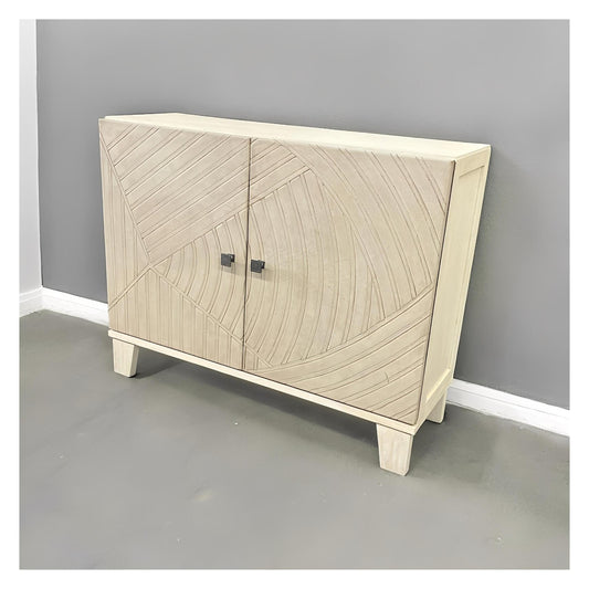 Entraygues Chest, Weathered White, Carved Geometric Panels