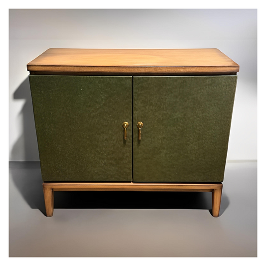 Domme Chest, Olive Green, Mid Century Modern Two Door Cabinet With Brass Knobs And Tapered Legs