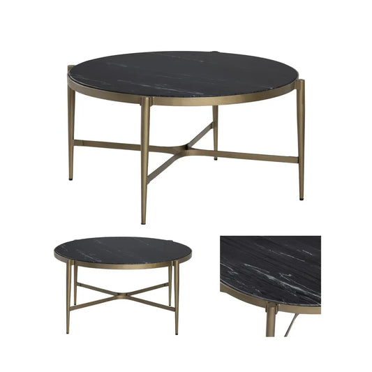 Somerset Black Marble Round Cocktail or Coffee Table