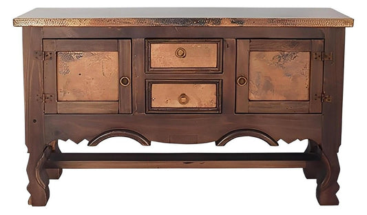 Antelope Butte Two Drawer One Door Yoke Leg Credenza / Console Table With Copper- Small