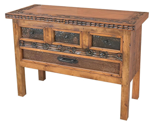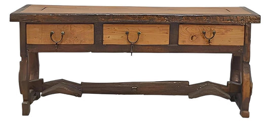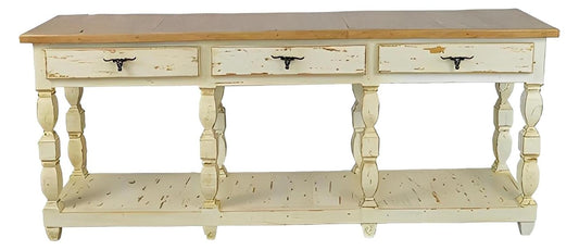 Saddleback Mountain Three Drawer Credenza / Console Table Longhorn Pulls