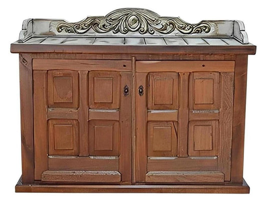 Sycamore Canyon Credenza / Console Table, Carved Saddle, Old Door Top